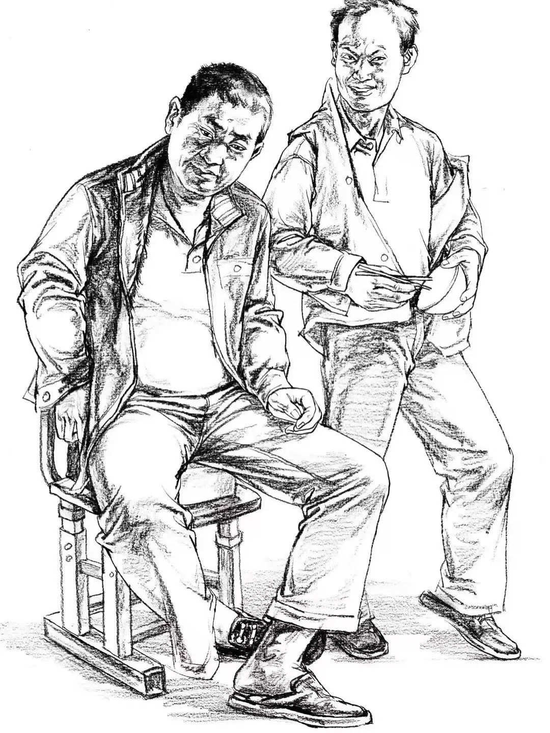 單人速寫是研究人物本身的關(guān)系,組合速寫是研究人與人之間的空間關(guān)系。