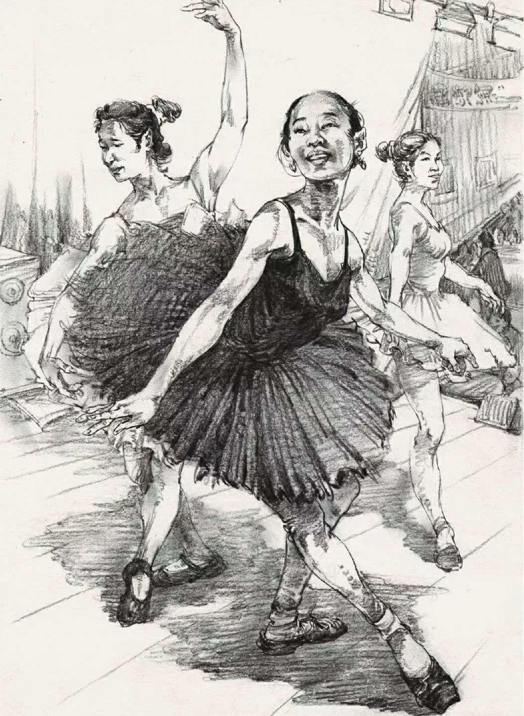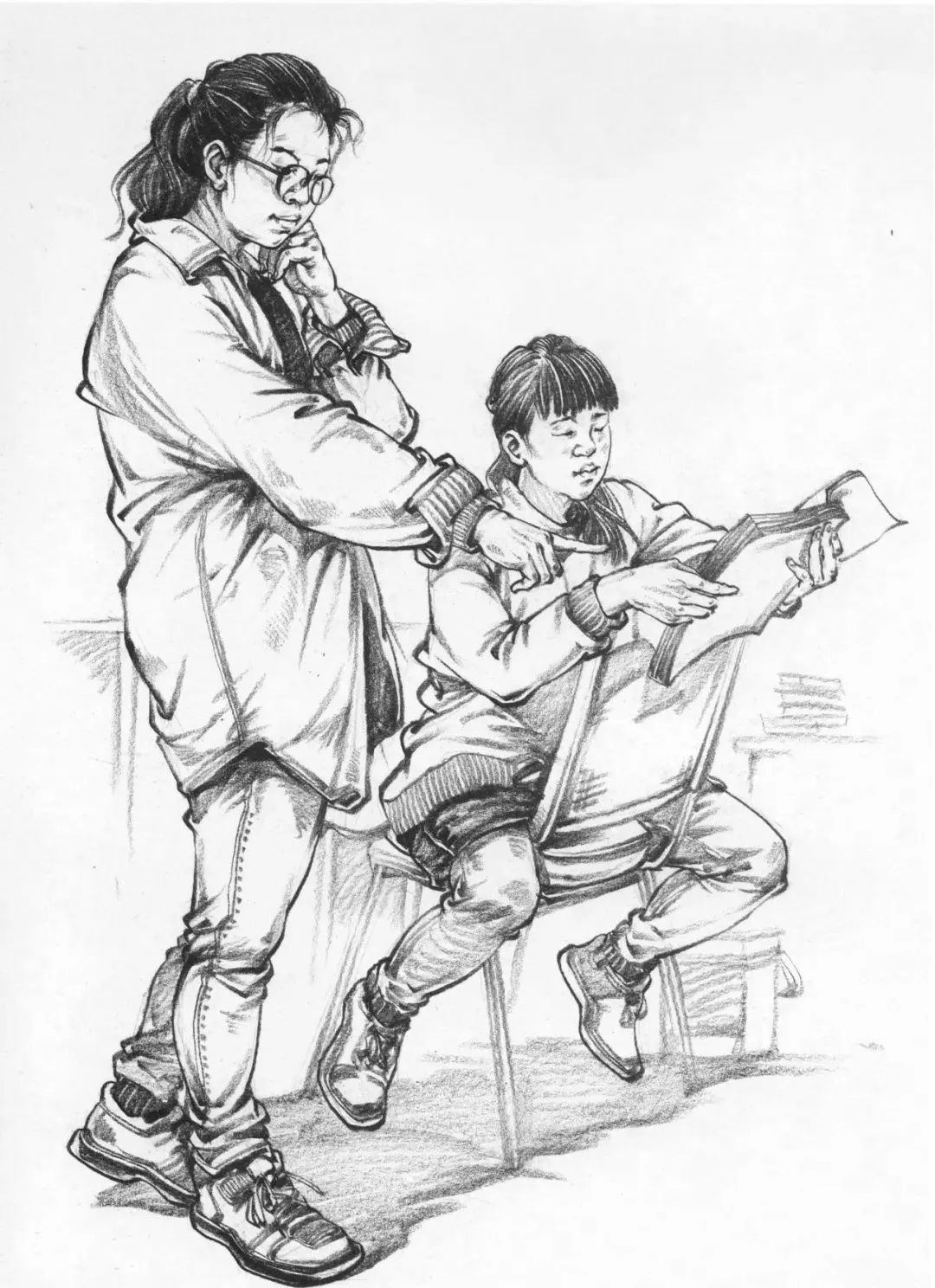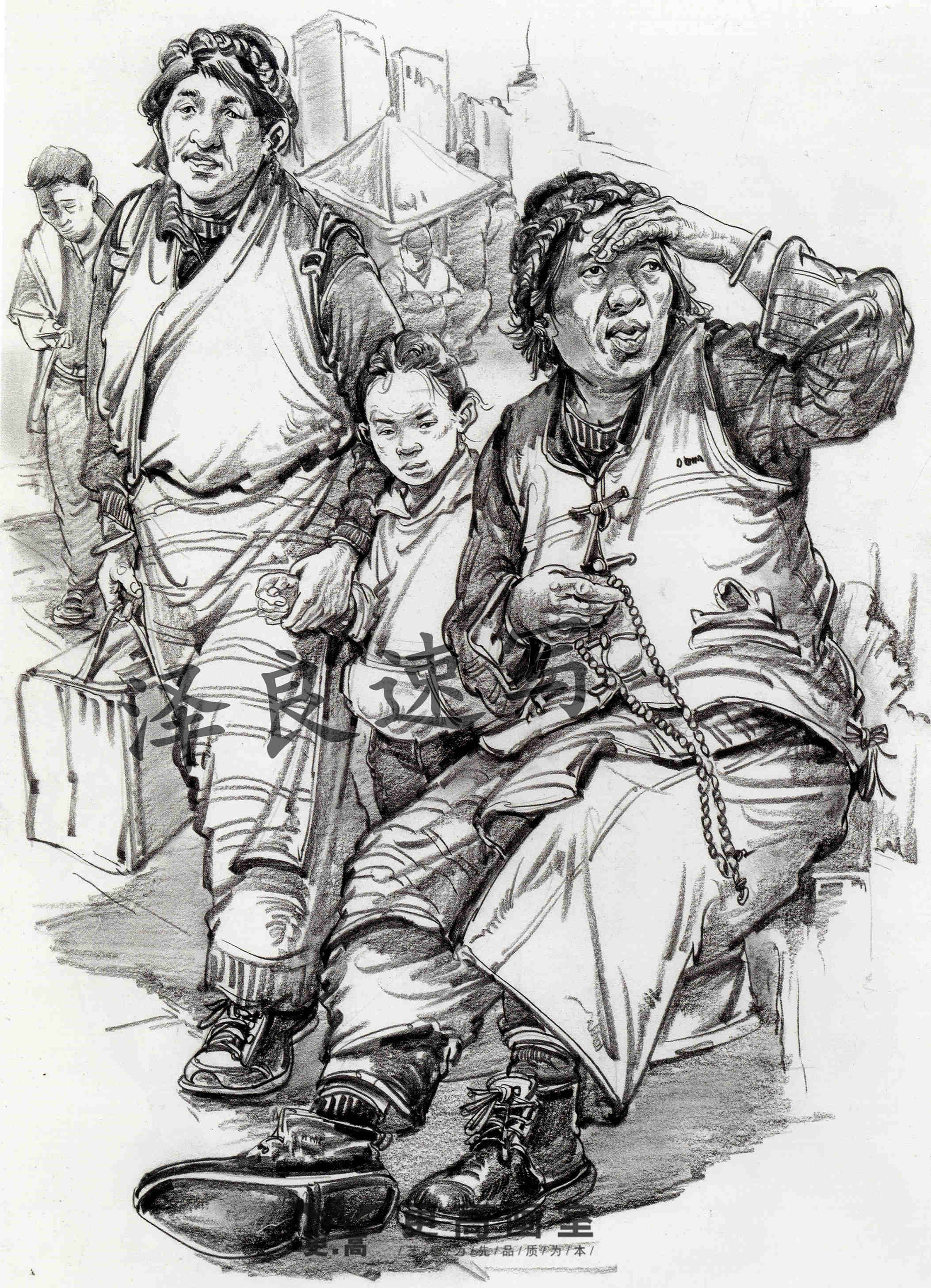其次是人物要有主次之分,主次不一定是前面的人就是主要的,后面的人就一定是次要的,而是說塑造程度,以及畫面的中心,幾個人基本的關(guān)系和塑造都要有,而主要的人物要有一些深入塑造,不管是線條還是明暗的表現(xiàn)手法都是這樣,一旦沒有主次之分,那么畫面就會平平淡淡,沒有亮點(diǎn)。