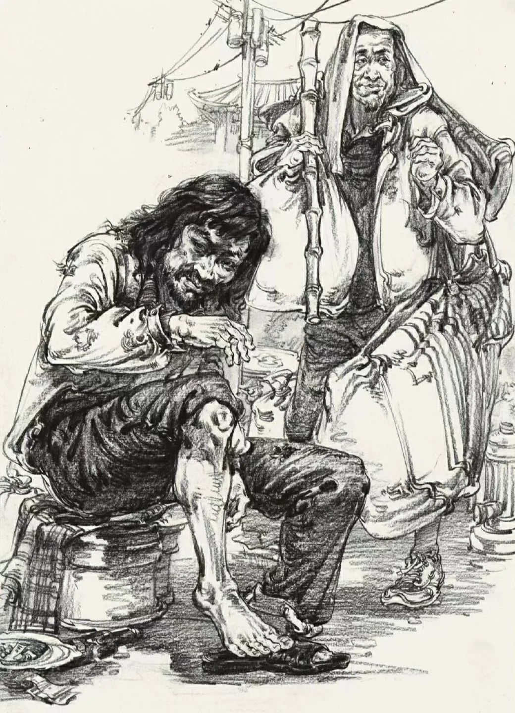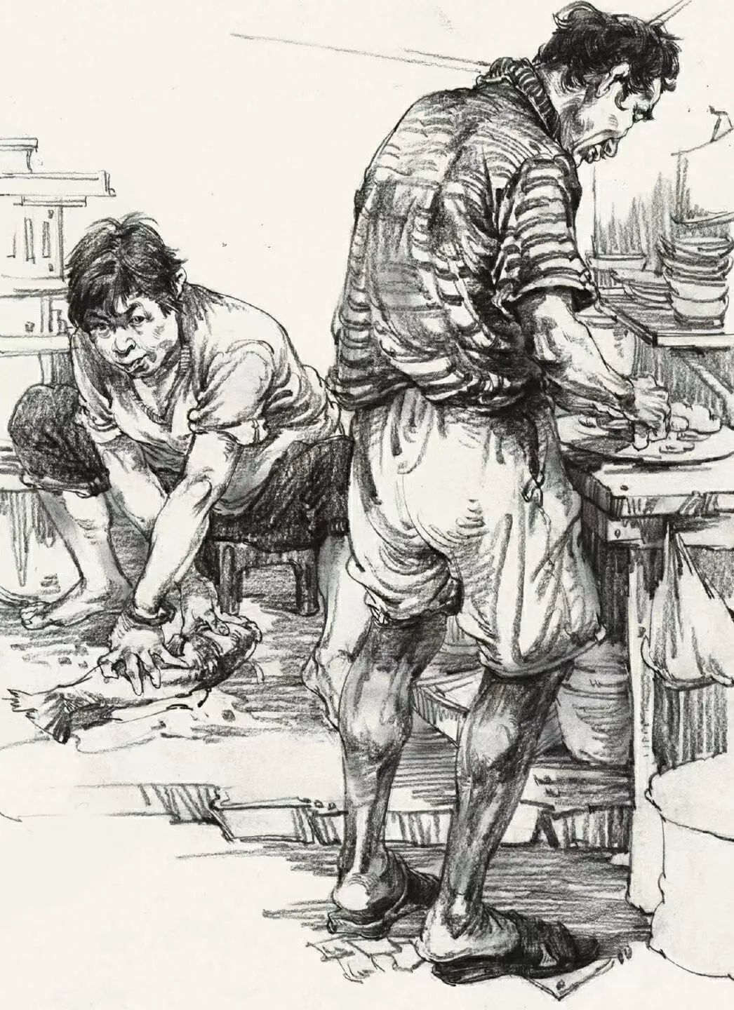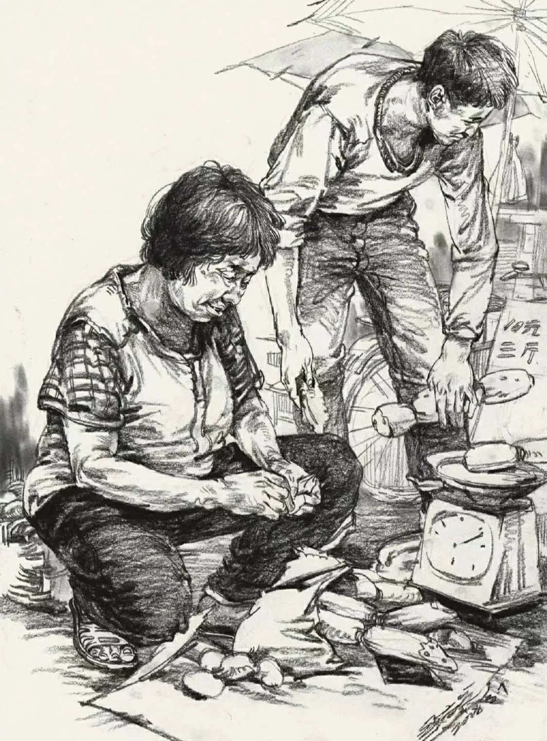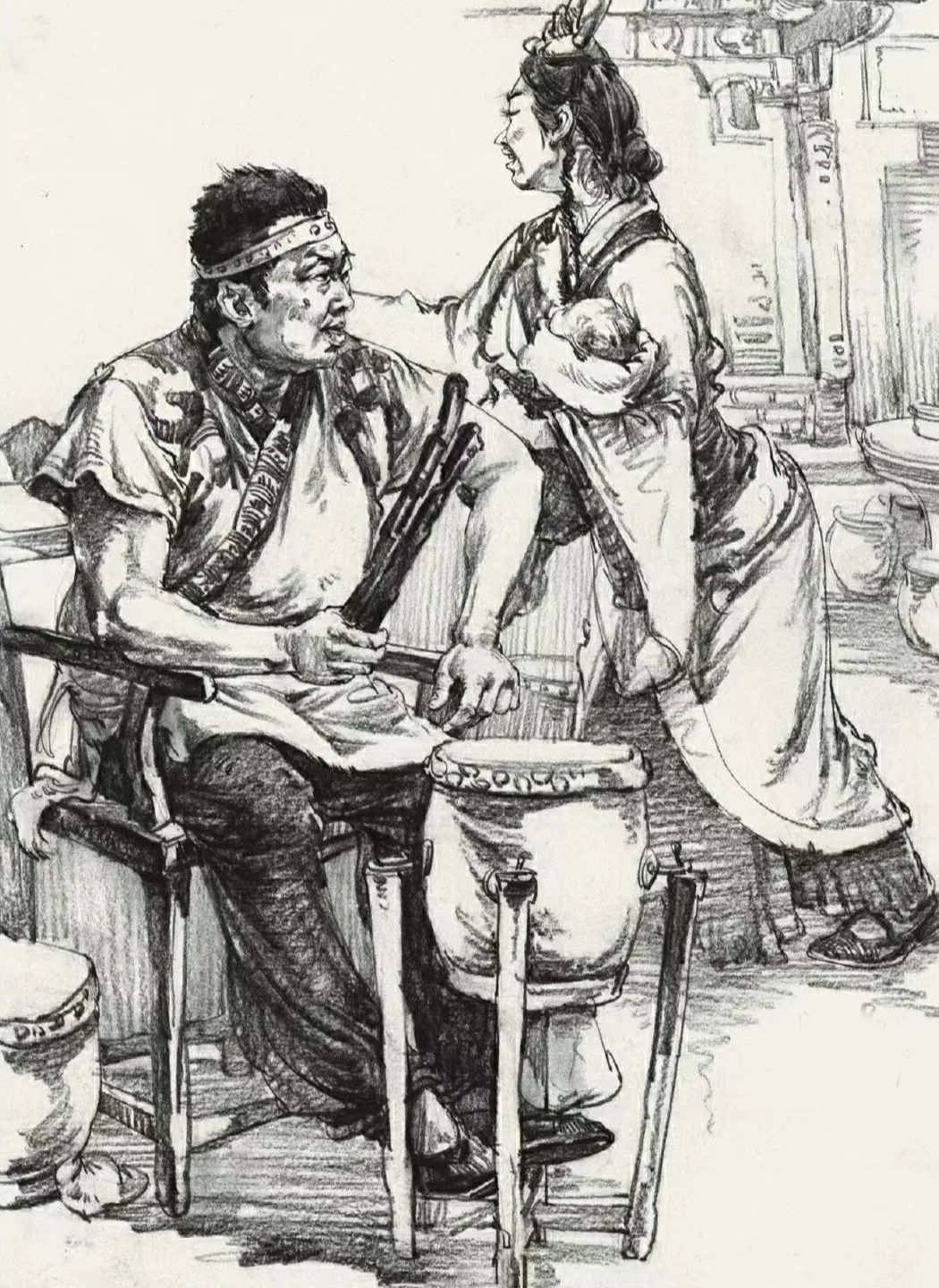其次是人物要有主次之分,主次不一定是前面的人就是主要的,后面的人就一定是次要的,而是說塑造程度,以及畫面的中心,幾個人基本的關(guān)系和塑造都要有,而主要的人物要有一些深入塑造,不管是線條還是明暗的表現(xiàn)手法都是這樣,一旦沒有主次之分,那么畫面就會平平淡淡,沒有亮點(diǎn)。