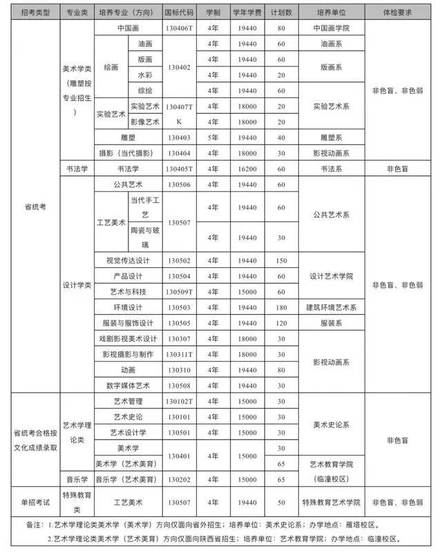 美術學(藝術美育)方向僅面向陜西招生,辦學地點在臨潼校區。